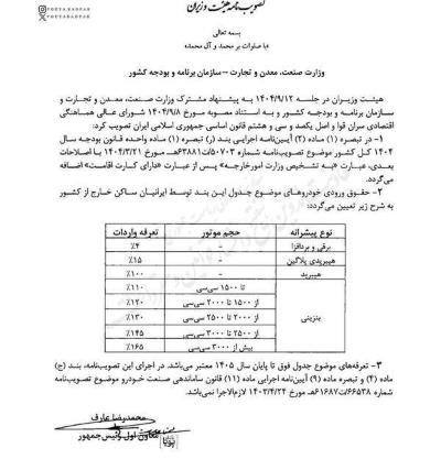 فهرست خودرهای قابل ثبت در سامانه جامع تجارت